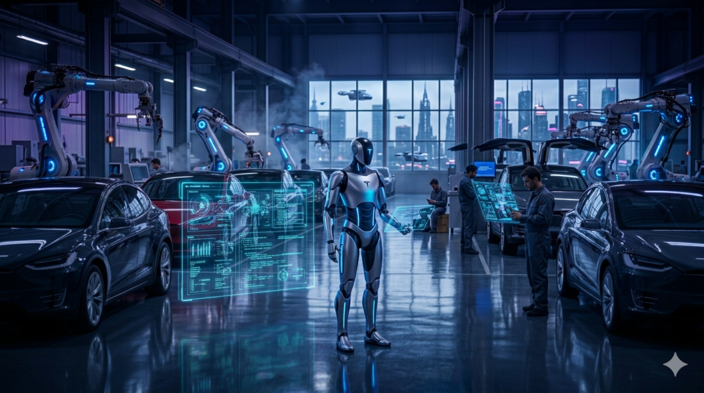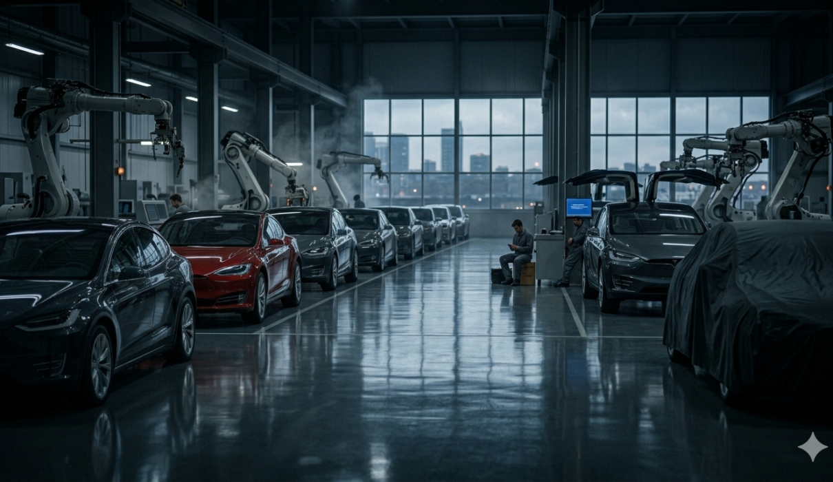 📍 [INSERT IMAGE 1 HERE: Tesla car lineup or factory production line]